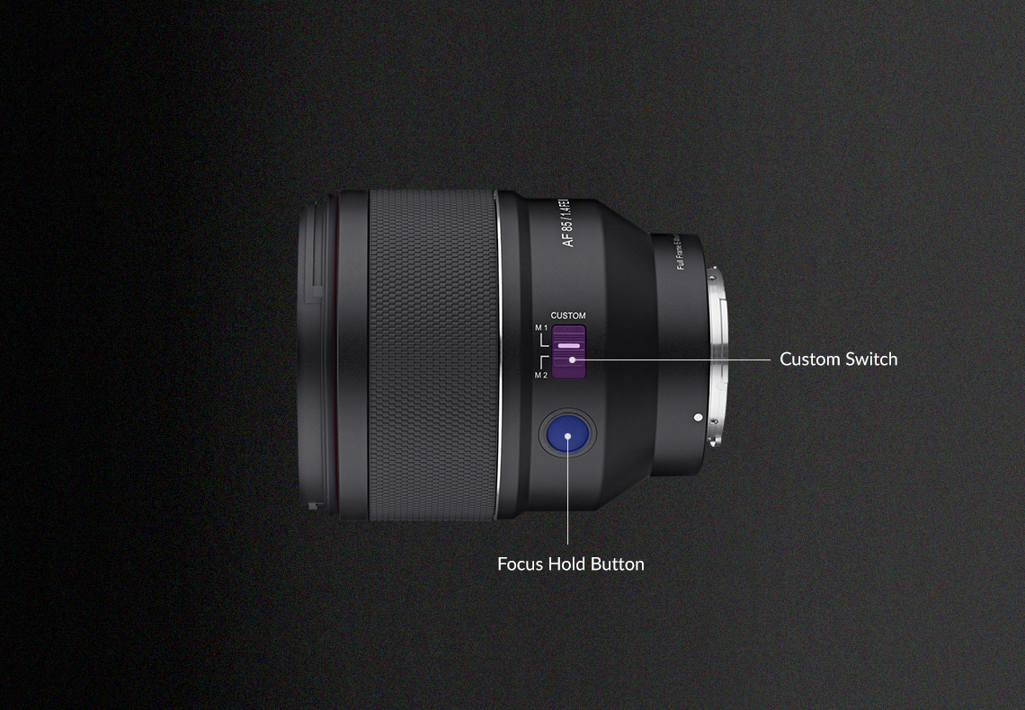 Important features of the AF 85mm F1.4 E II include: Customizable 1) Focus hold button & 2) Custom switch. Overall, this is a lens that meets professional requirements for control and reliability, for both stills and videos.