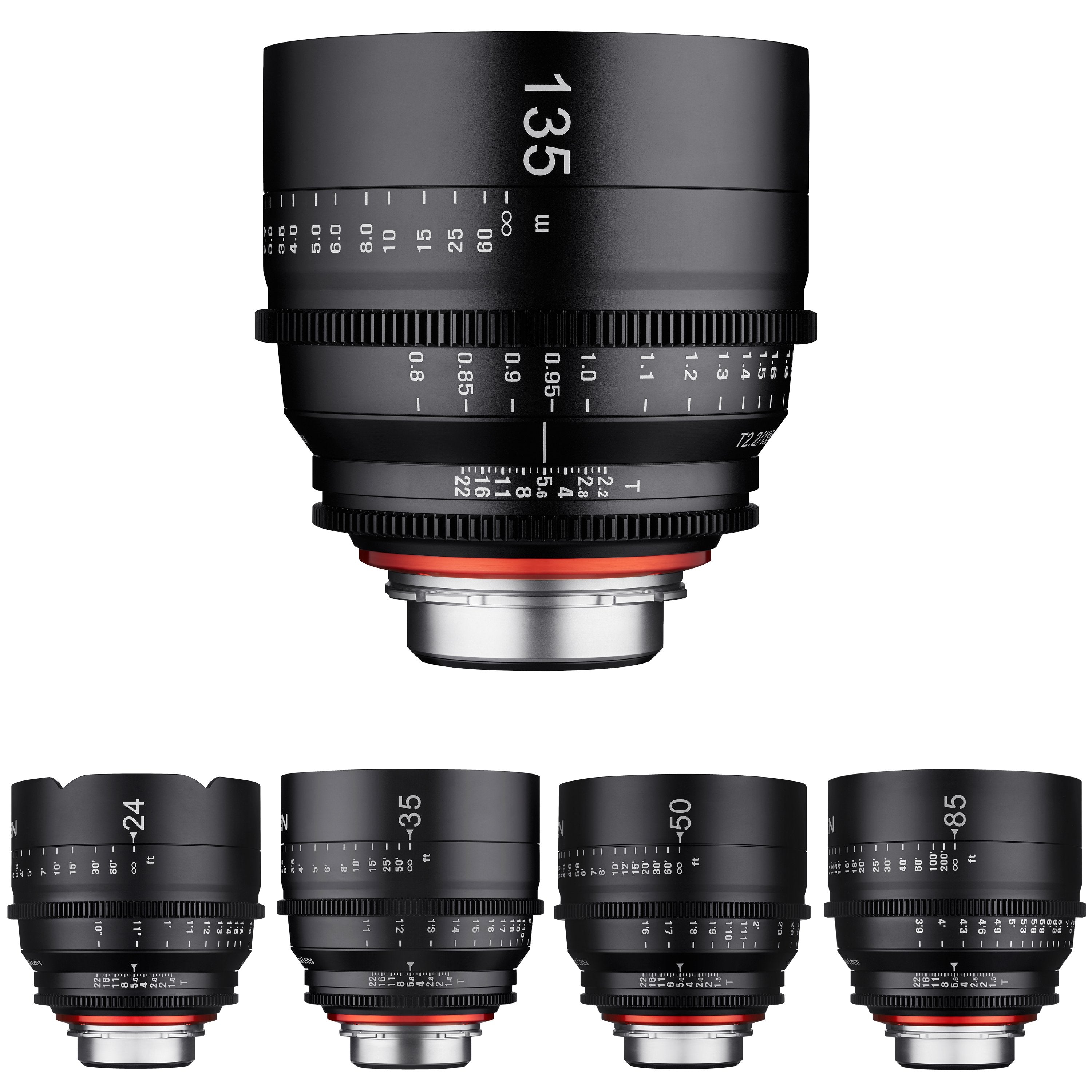 This Samyang XEEN CF Lens Bundle includes the 24mm T1.5 Wide Angle, 50mm T1.5 and 85mm T1.5 Telephoto.