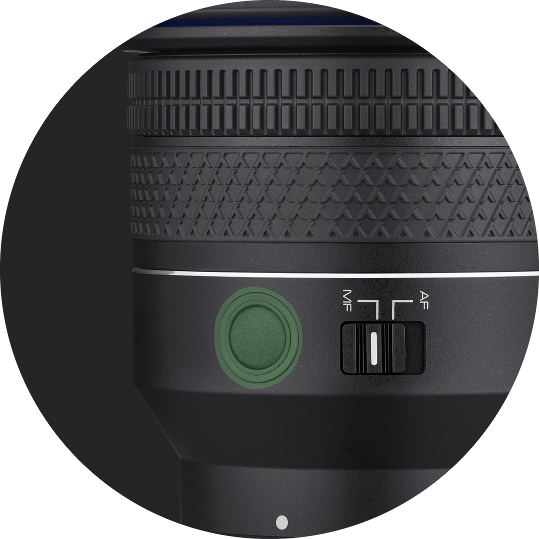 The MF/AF switch on the lens barrel allow for direct, intuitive adjustments. These features enable quick changes between manual and autofocus settings.